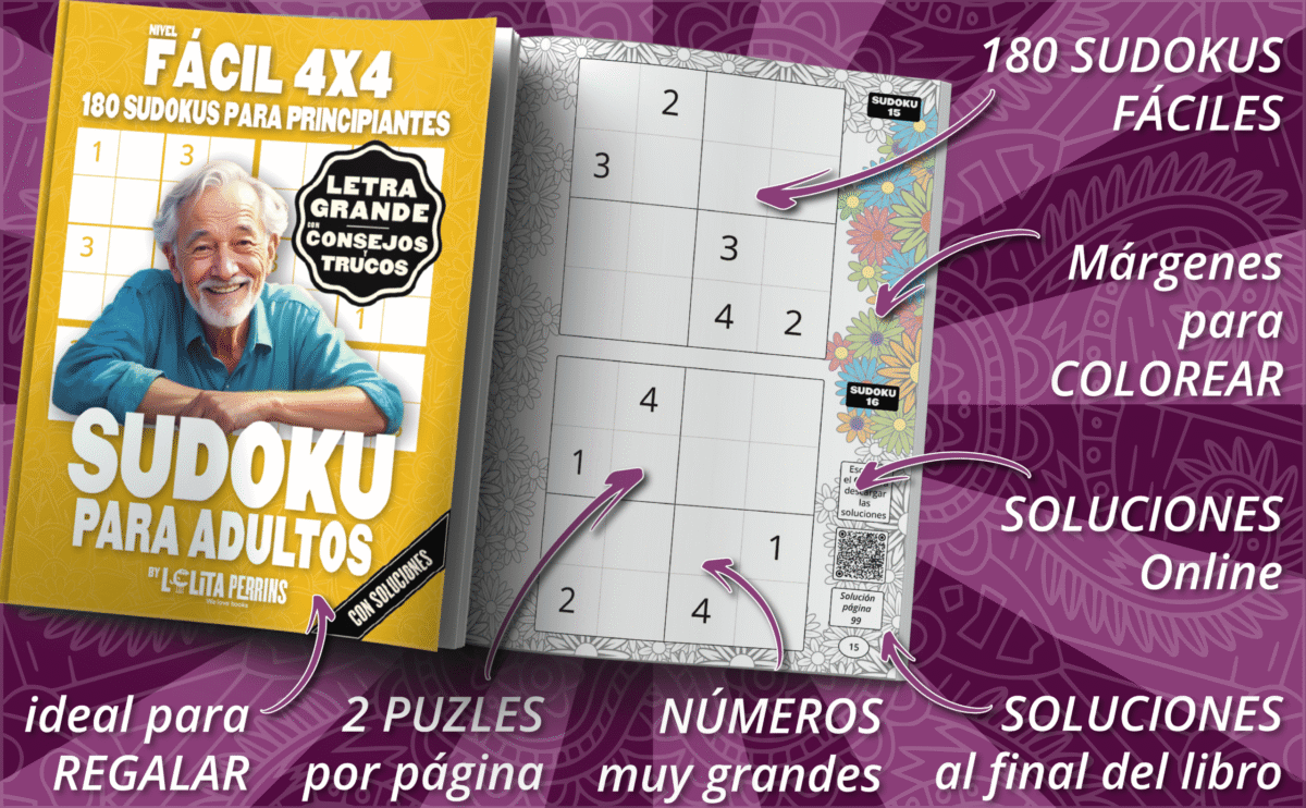 Con este libro de sudokus fáciles 4×4, aprenderás rápidamente a resolver puzzles y disfrutarás de una experiencia divertida y relajante. Diseñado especialmente para principiantes y personas mayores, te permitirá mejorar tu lógica y activar tu mente de forma amena.
