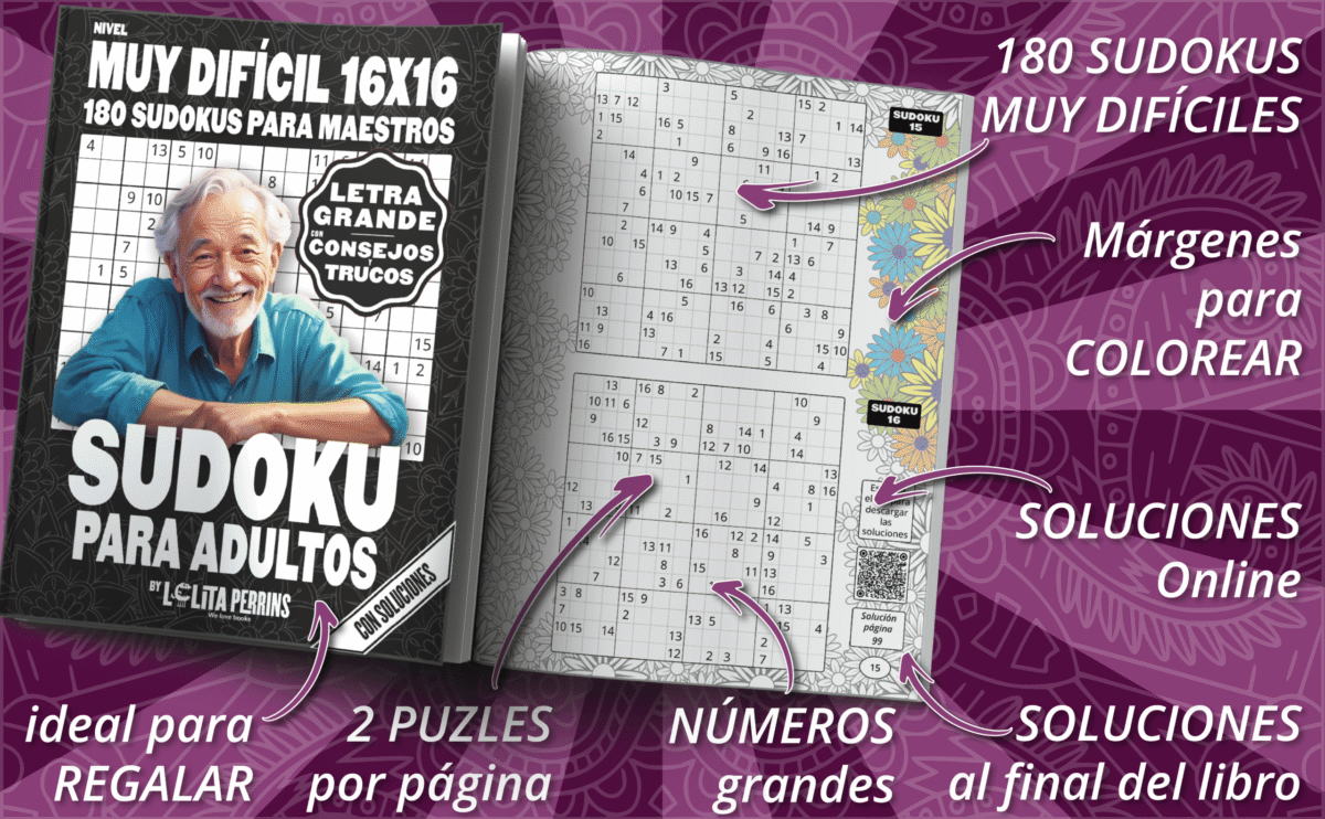 Este libro de sudokus muy difíciles incluye 180 puzzles 16×16 diseñados para mantener tu mente activa y en forma. Con letra grande y un diseño claro, es perfecto para quienes buscan retos estimulantes y disfrutar resolviendo sudokus de nivel maestro.